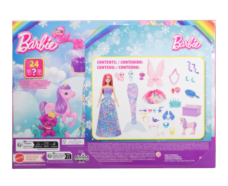 Barbie Advent Calendar, Fashion Doll & 24 Surprise Accessories, Transform To Mermaid & More